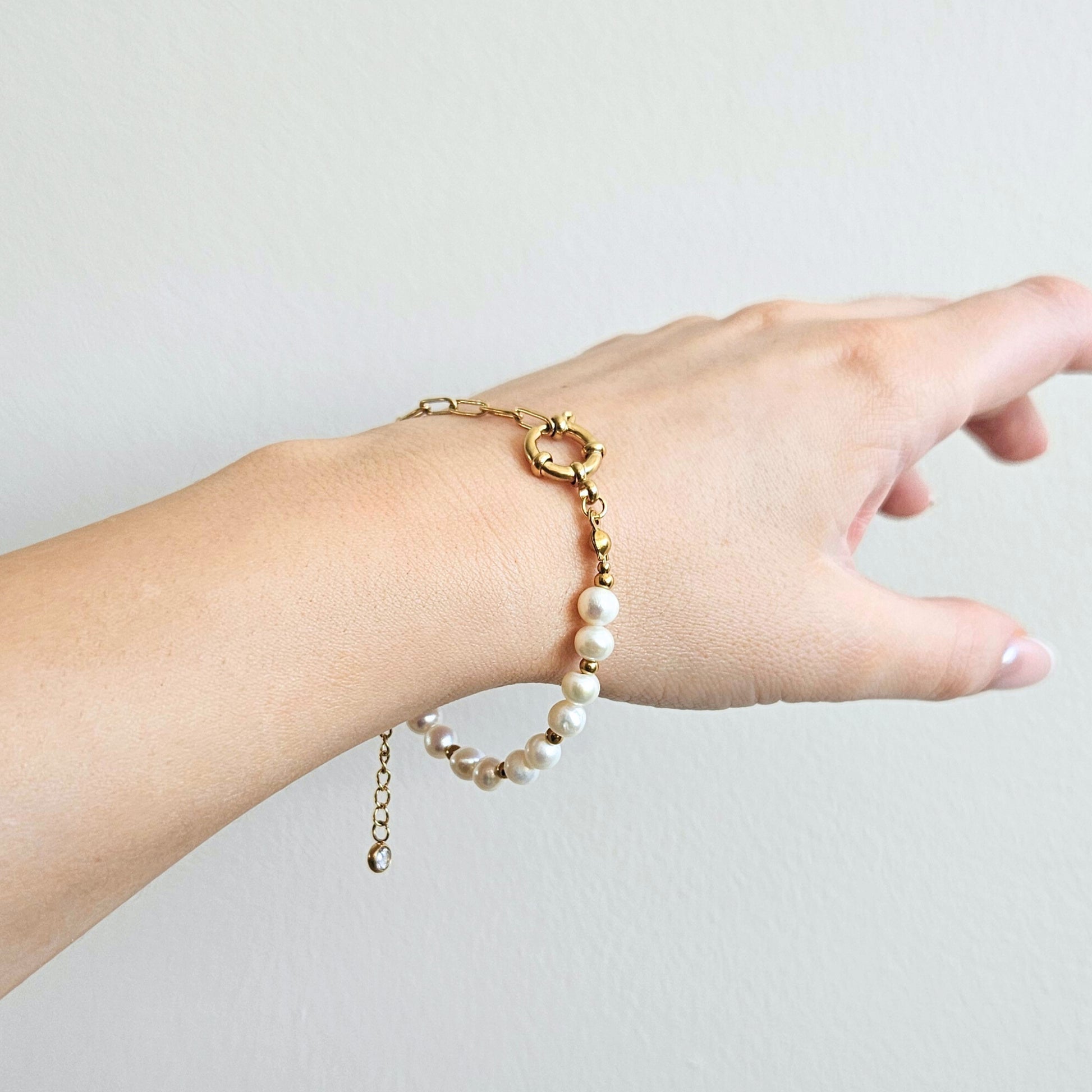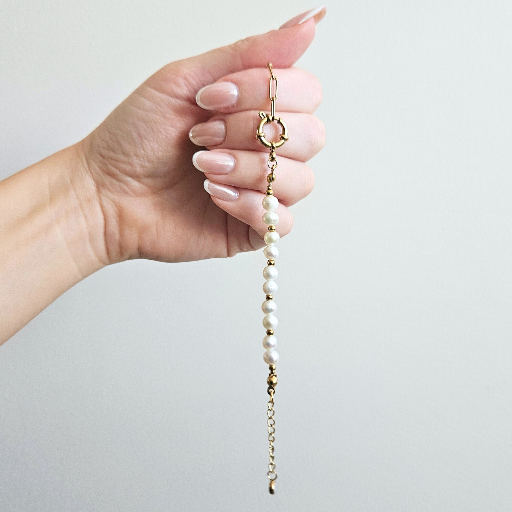 Bransoletka OCEAN GLOW to kwintesencja minimalistycznej elegancji. Delikatna forma z naturalną perłą słodkowodną i subtelny blask sprawiają, że idealnie komponuje się zarówno z codziennymi, jak i wieczorowym stylizacjami. Tworzy harmonijny komplet z naszyjnikiem z tej samej kolekcji – dla tych, którzy cenią ponadczasowy styl z nutą luksusu.