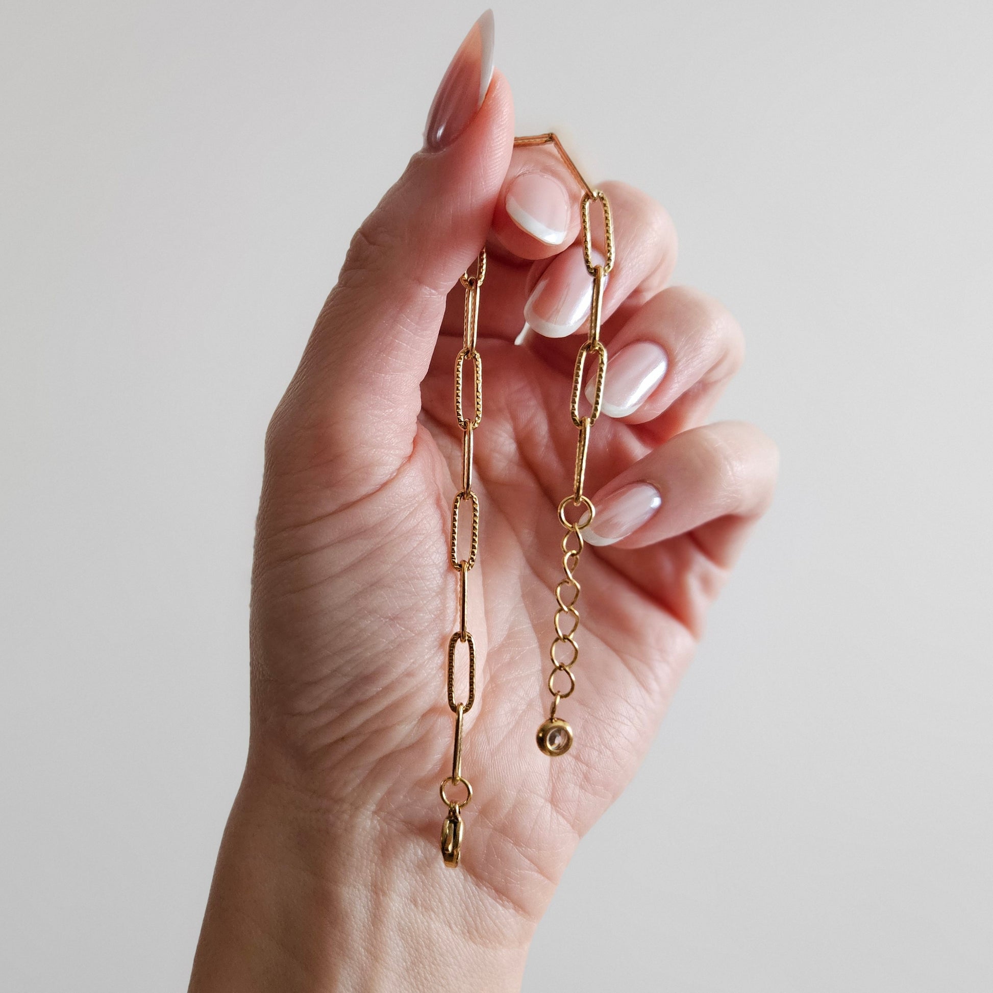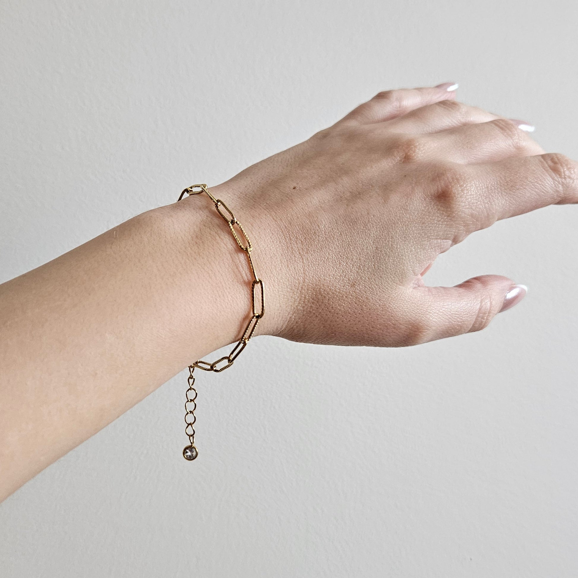 Bransoletka Aura Flow zachwyca prostą formą i charakterem. Łańcuszek typu spinacz nadaje jej modowego pazura, a jednocześnie lekkości. Idealna jako samodzielny akcent lub baza do łączenia z charmsami czy innymi bransoletkami – dla tych, którzy lubią wyrażać siebie subtelnie, ale z klasą.