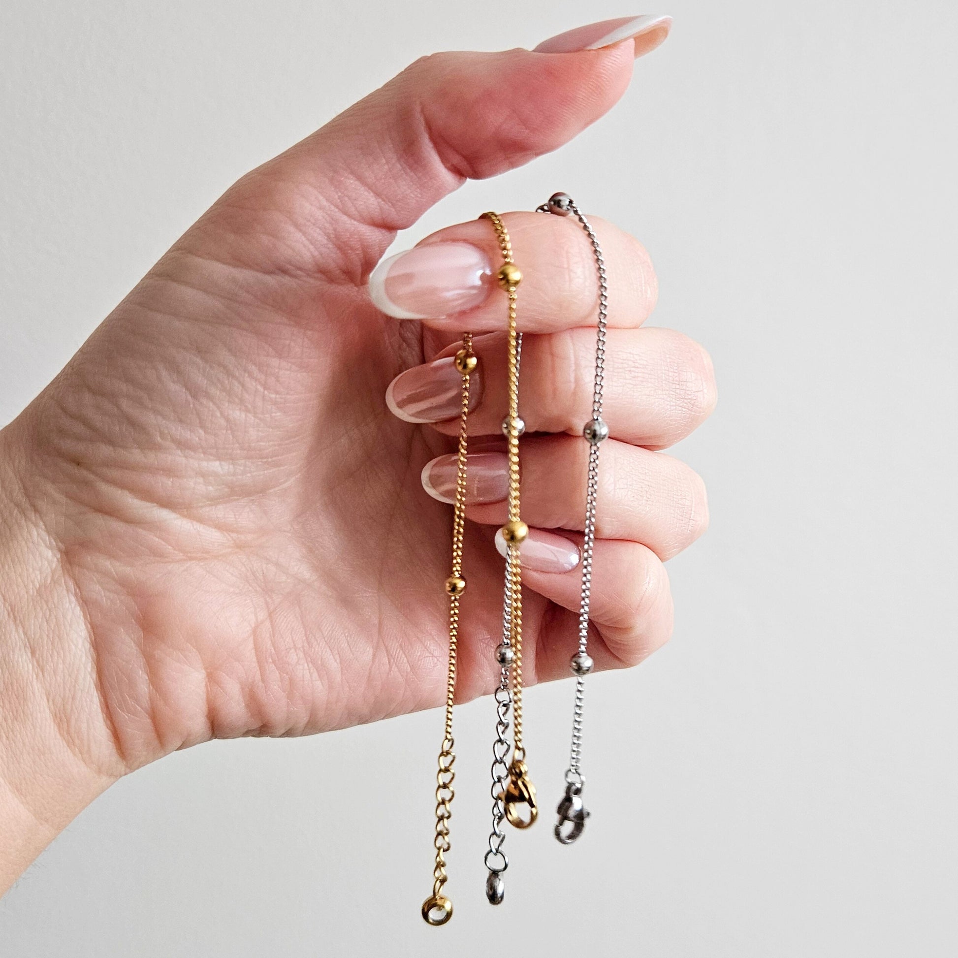 Bransoletka "Celestial" to minimalistyczny łańcuszek z delikatnymi kuleczkami, inspirowany blaskiem gwiazd. Lekki, subtelny i idealny do noszenia na co dzień lub jako elegancki akcent wieczornej stylizacji.