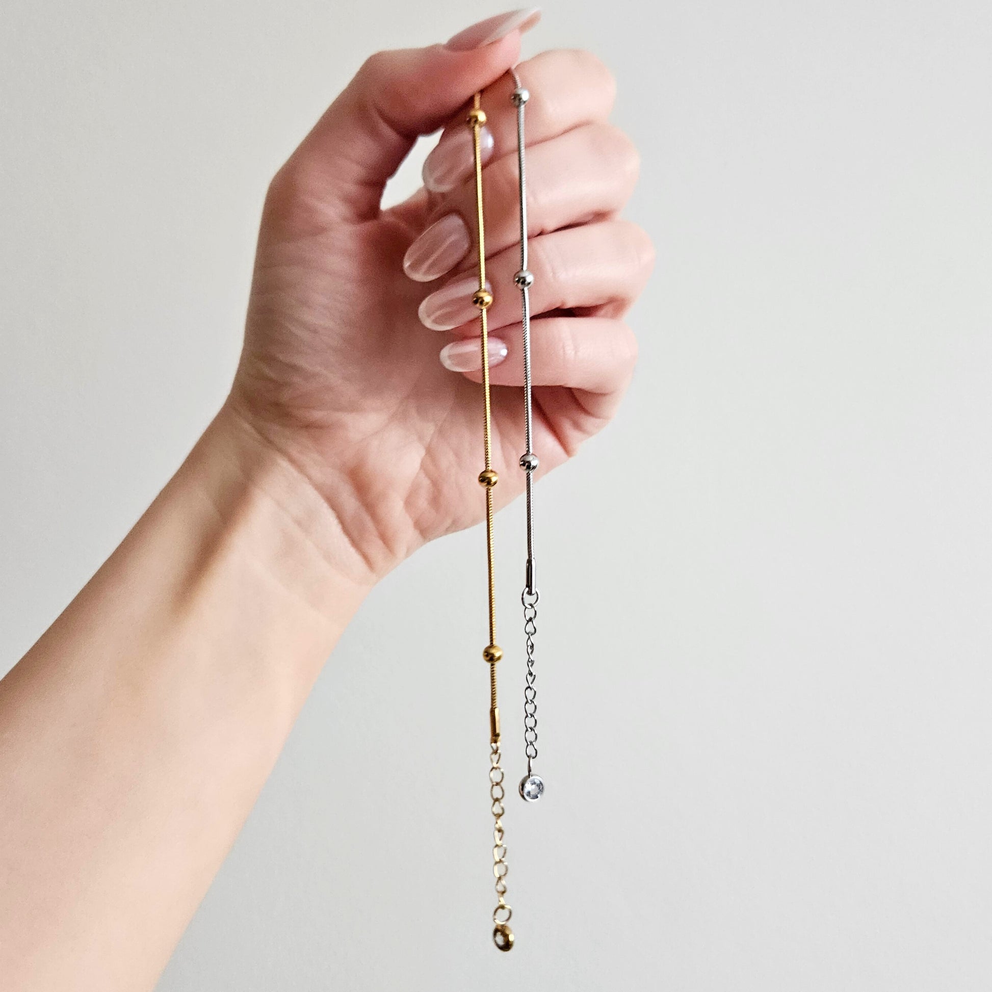 Bransoletka CELESTIAL to kwintesencja minimalistycznej elegancji i ponadczasowego stylu. Delikatna forma i subtelny blask sprawiają, że idealnie komponuje się zarówno z codziennymi, jak i wieczorowym stylizacjami.