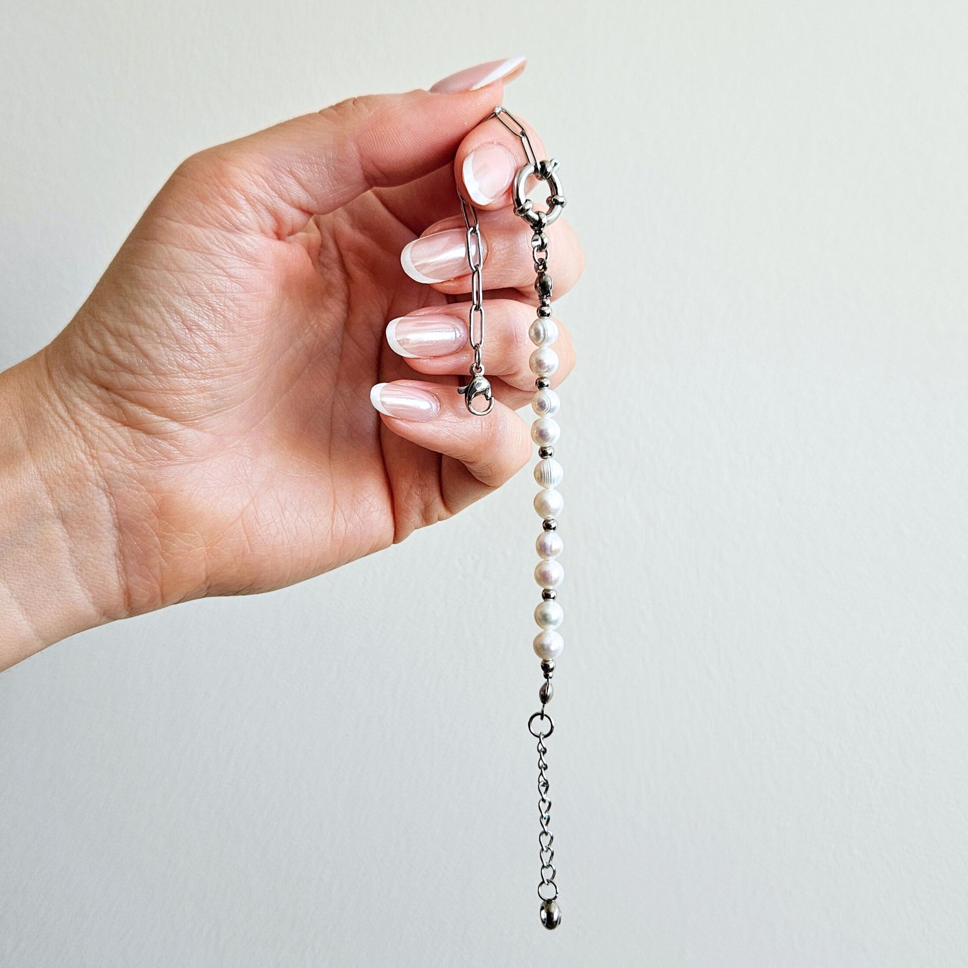 Bransoletka OCEAN GLOW to kwintesencja minimalistycznej elegancji. Delikatna forma z naturalną perłą słodkowodną i subtelny blask sprawiają, że idealnie komponuje się zarówno z codziennymi, jak i wieczorowym stylizacjami. Tworzy harmonijny komplet z naszyjnikiem z tej samej kolekcji – dla tych, którzy cenią ponadczasowy styl z nutą luksusu.