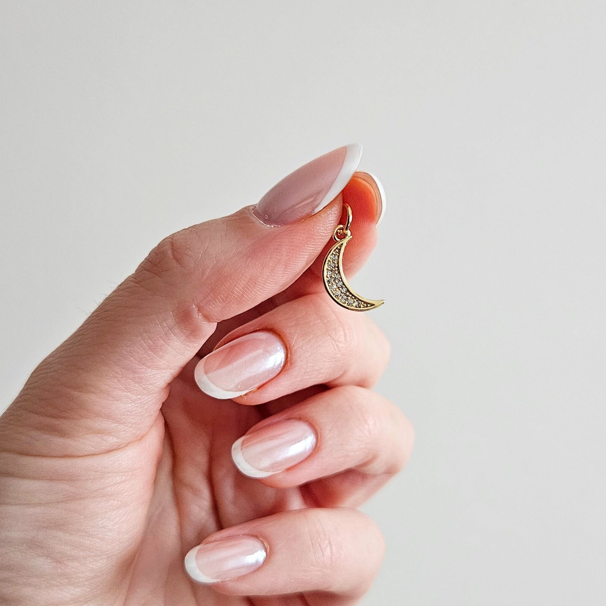 Dodaj odrobinę tajemniczości i elegancji do swojego naszyjnika lub bransoletki dzięki charmsowi w kształcie księżyca. Subtelnie połyskuje, przyciągając wzrok i podkreślając Twój unikalny styl. Idealny dla miłośniczek nocnego nieba i symbolicznych dodatków.
