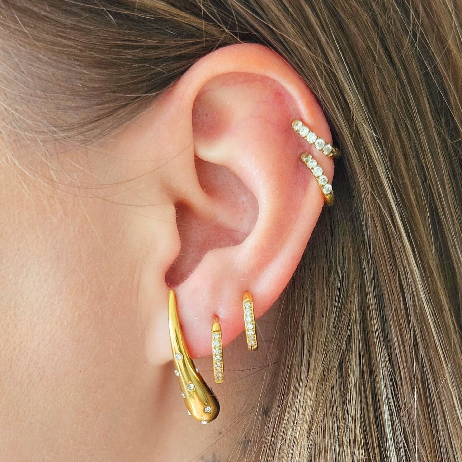 Kolczyki Nyra zachwycają delikatną formą podłużnej, dmuchanej kropli ozdobionej subtelnym błyskiem cyrkonii. Ich opływowy kształt nadaje stylizacji lekkości, a drobne kamienie przyciągają światło przy każdym ruchu.