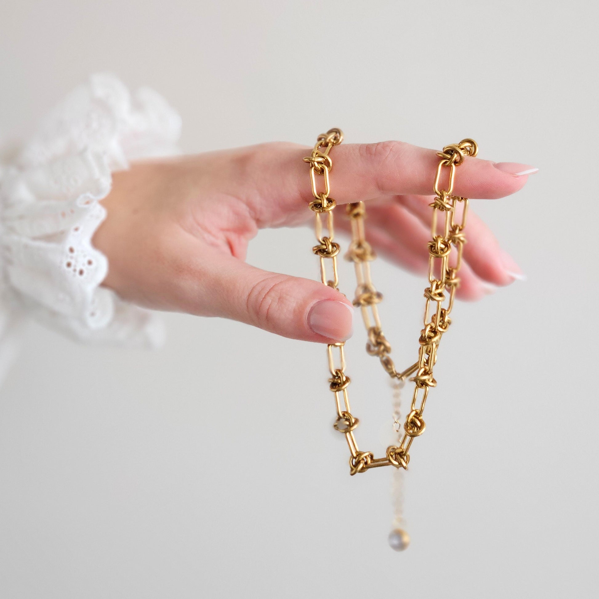 Łańcuszek „TIDE” to wyraz ponadczasowego stylu i nowoczesnej formy. Masywny splot typu supełek nadaje mu wyjątkowego charakteru, łącząc modową odwagę z subtelną elegancją.
