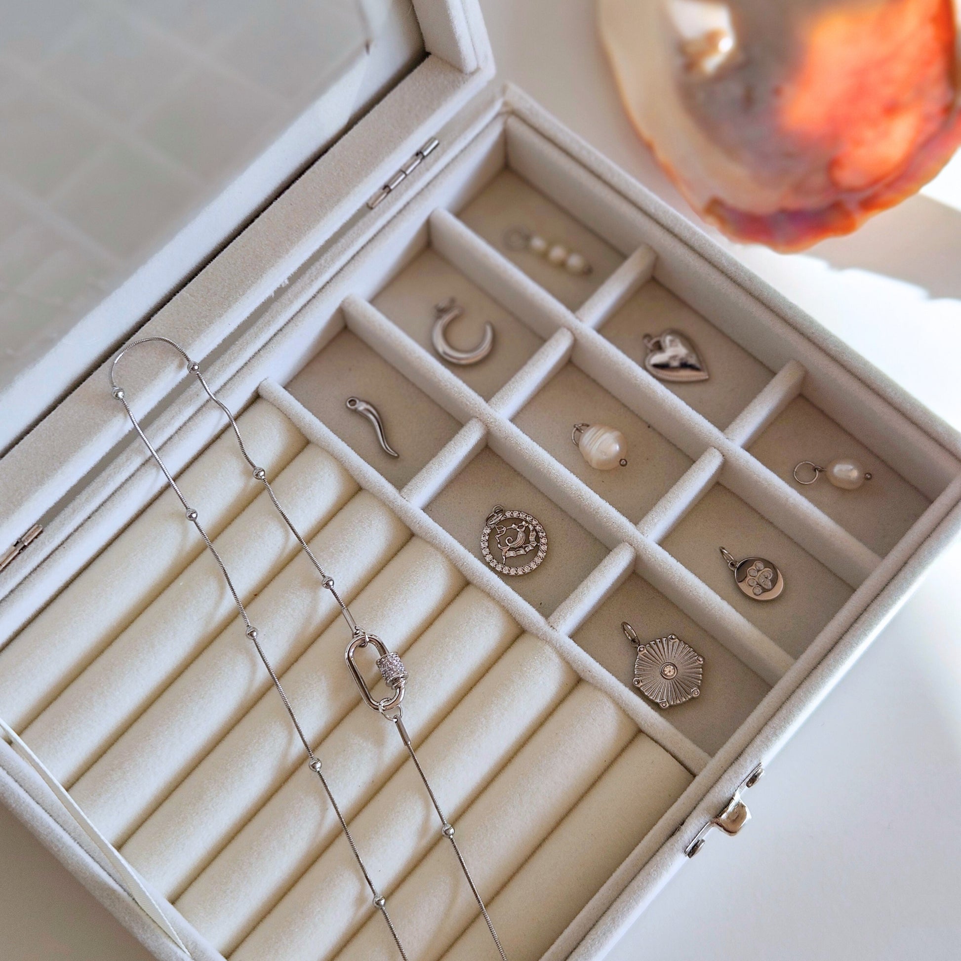 Ozdobne zapięcie nadaje charakteru, a jego minimalistyczna forma sprawdzi się zarówno solo, jak i z wybranym charms’em od La Nuée.