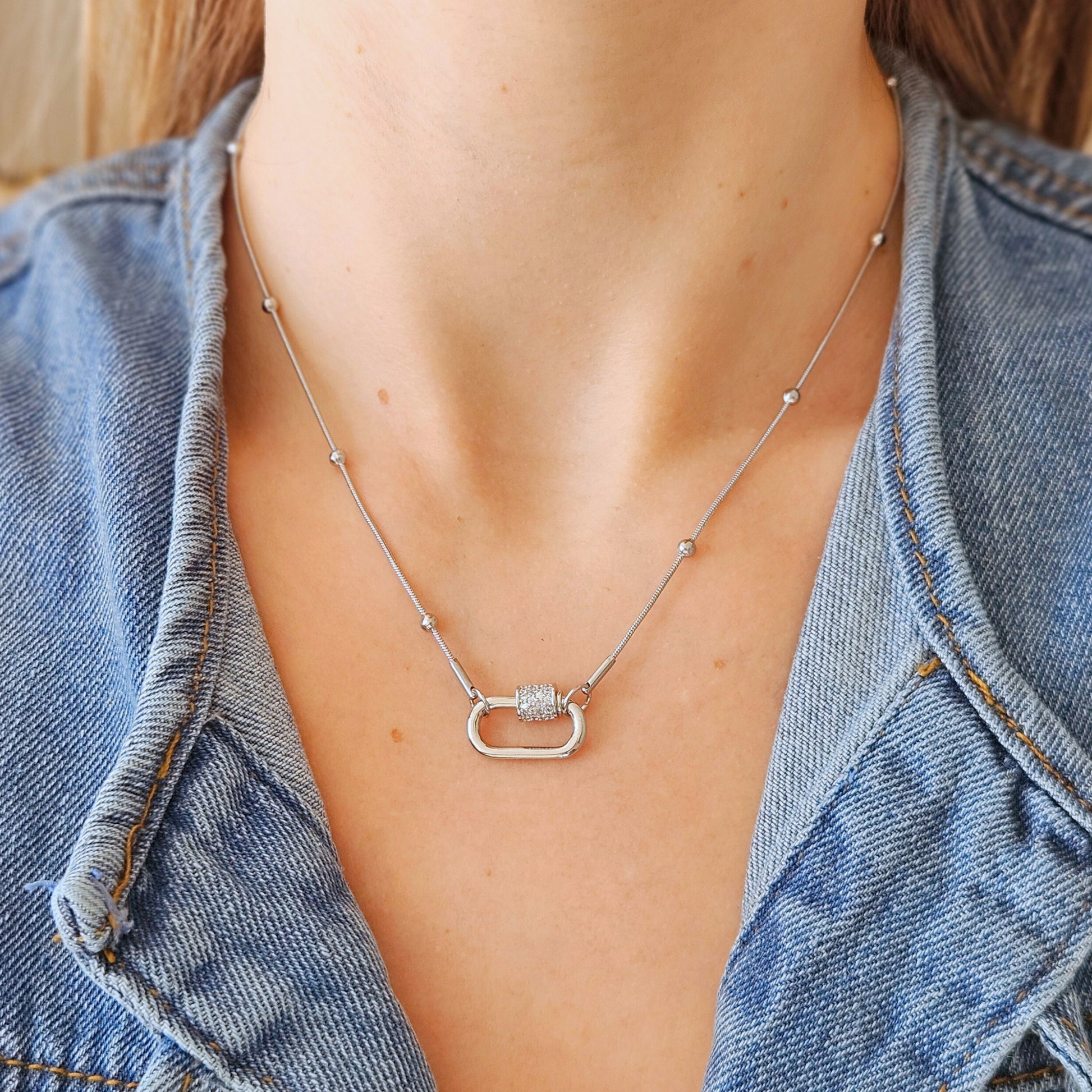 "Lumiss" to delikatny naszyjnik typu żmijka, ozdobiony drobnymi kuleczkami i eleganckim, dekoracyjnym zapięciem. Subtelny połysk i minimalistyczna forma sprawiają, że idealnie komponuje się zarówno z codziennymi, jak i eleganckimi stylizacjami.