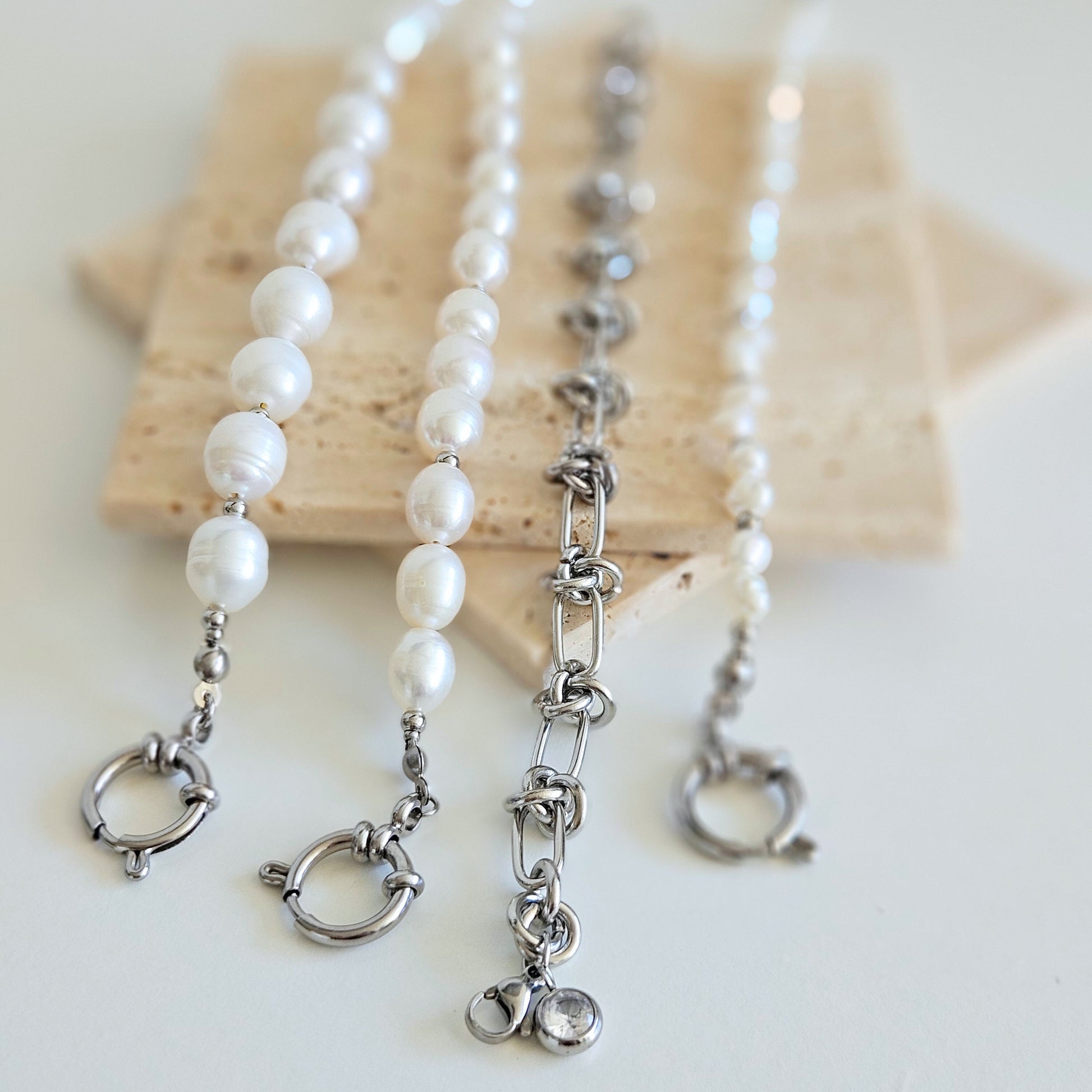Duże, efektowne perły naturalne, ta połówka została zaprojektowana z myślą o łączeniu z wybraną częścią łańcuchową z kolekcji Mix & Match, tworząc naszyjnik, który przyciąga spojrzenia.