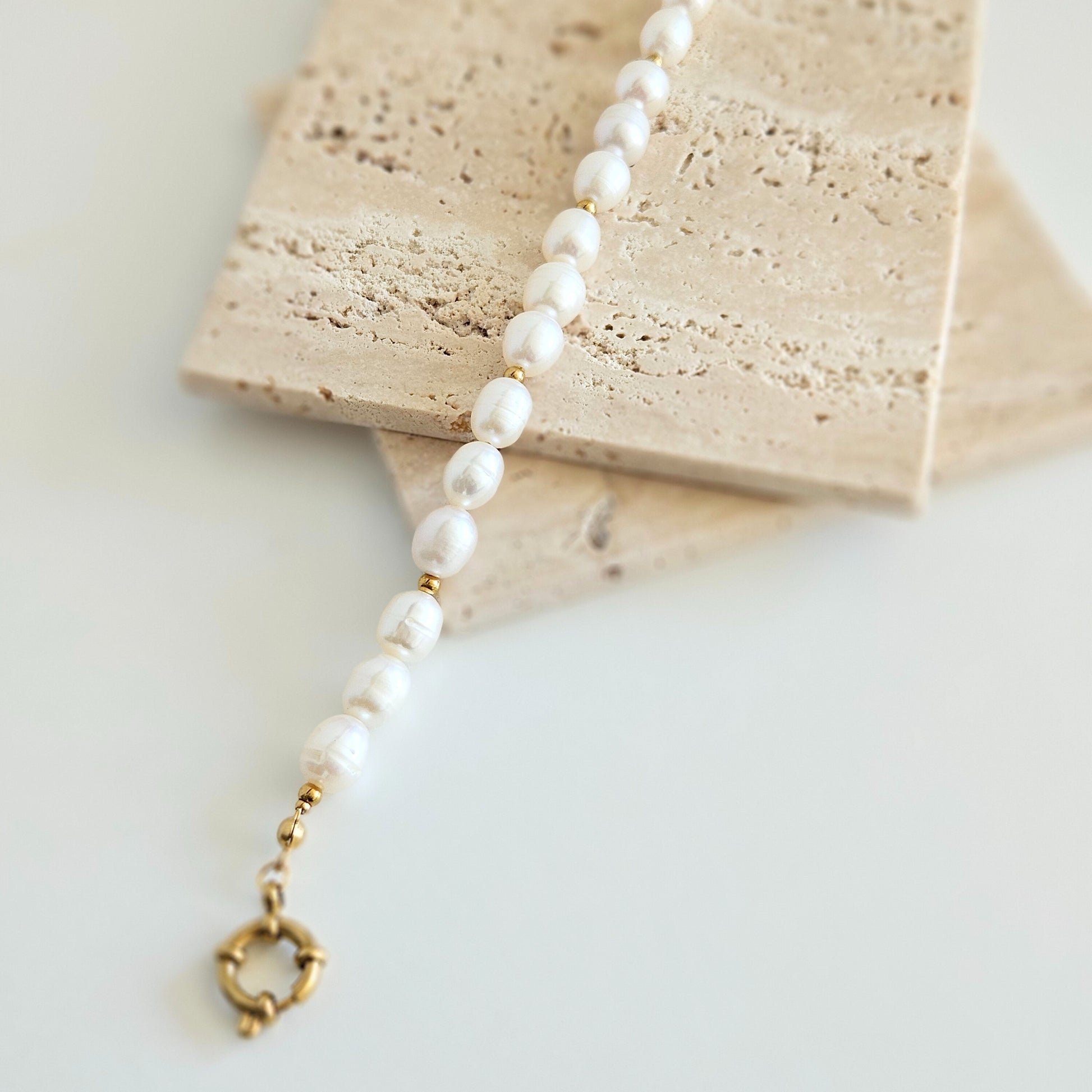 Materiał: Perły naturalne słodkowodne, Stal szlachetna pozłacana 18 karatowym złotem